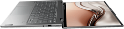 Yoga 7 muotoiluun kuuluu käyttömukavuutta kohottavat pyöristetyt reunat ja miellyttävän tuntuinen sileä pinta. Tietokoneesta voi nauttia neljässä erilaisessa taitettavassa tilassa. Voit siis käyttää laitetta kannettava- tai tabletti-tilassa tai halutessasi voit jakaa näyttöäsi teltta- tai telinetilassa.
