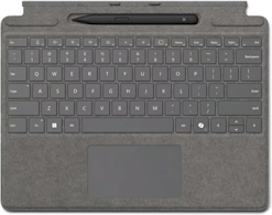 Microsoft Surface Pro 11/10 TypeCover -näppäimistö CoPilot + Slim Pen 2 parantaa tuottavuutta ja käyttömukavuutta QWERTY-näppäimistön, CoPilot-painikkeen ja pitkän akunkeston avulla. Tyylikäs muotoilu, kosketusalusta ja kynäteline tekevät siitä täydellisen lisävarusteen Surface Pro 11 ja 10 -laitteellesi.