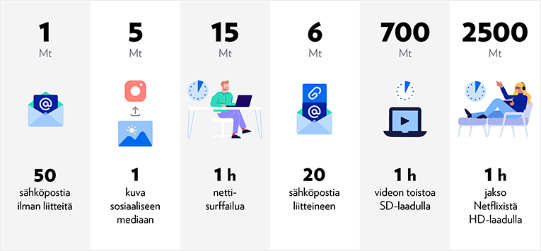 - Datasiirto: Perushinta käytölle on 5 € / Mt